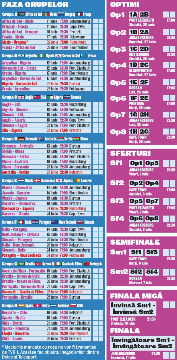 Deschiderea Campionatului Mondial de fotbal: Africa de Sud - Mexic (11.06.2010, 17:00, TVR 1)