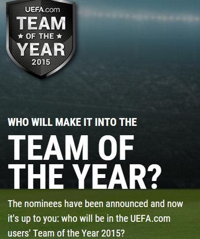 Accesati site-ul http://en.toty.uefa.com si veti gasi toti jucatorii nominalizati de UEFA pentru echipa anului 2015.