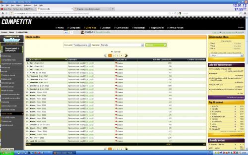 Userul cu cel mai mare numar de credite folosite prin "alimentarea" contului - 100 de credite